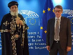 الثلاثاء ١٤ أكتوبر ٢٠١٩م البابا ورئيس مجموعة حوار الثقافات والأديان بحزب الشعب الأوروبي والسفير المصري ببروكسل خلال زيارة قداسته لمقر البرلمان الأوروبي اليوم |