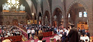 ألقى قداسة البابا، بعد طقس التدشين، كلمة روحية هنأ خلالها شعب كنيسة العذراء ومار يوحنا بتدشين كنيستهم، كما كرم قداسته الأسقف بوني ممثل الكنيسة الكاثوليكية المالك السابق لمبنى الكنيسة التي كُرِّسَت اليوم، وبعض من كان لهم دور في إجراءات نقل الملكية. تأتي زيارة قداسة البابا لبلجيكا بعد فرنسا استكمالًا لجولته الرعوية التي بدأت يوم الأربعاء من الأسبوع الماضي، ومن المقرر أن تشمل عددًا من إيبارشيات الكرازة المرقسية بأوروبا. |