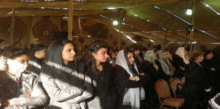 كانت الصناديق التي تحوي رفات الضحايا بعد عامين من المذبحة مرصوصة ومكسوة باللون الأبيض؛ حيث وقف ذويهم يشاهدون التوابيت، لعل هذه النظرات تخفف عنهم الأعباء، ووقف القساوسة يكملون القداس.