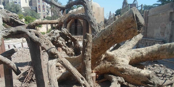 مفتشو الآثار بالمطرية: شجرة مريم المقدسة سليمة ولم تسقط وما سقط أخرى حديثة وشكلها المنحنى طبيعى.. ومهندسة زراعية: الرياح سبب سقوط الشجرة وليس الإهمال