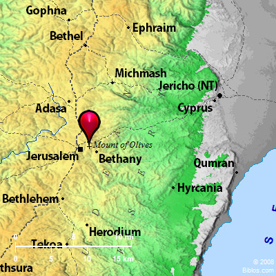 فجبل الزيتون هو بين بيت عنيا وبين اورشليم وهو تابع لمنطقة بيت عنيا من الناحية الشرقية ومقابل اورشليم من الناحية الغربية له ومن الناحية الشرقيه لاورشليم
