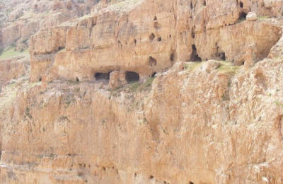 أربعين كهفاً تم بناء الدير فوق الكهف الذي أقام فيه السيد المسيح، والملكة هيلانة اْول من فكر في المحافظة على قدسية المكان حيث قامت عليه تشيدا قديما منذ عام 325 ميلادي. يشاهد الزائر للدير مجموعة من الكهوف حوالي 30-40 على المنحدرات الشرقية للجبل سبق أن سكنها الرهبان، أما باقي الدير وكأنه معلق في الهواء بصورة تبدو غريبة من غرائب هذا العالم الواسع. |