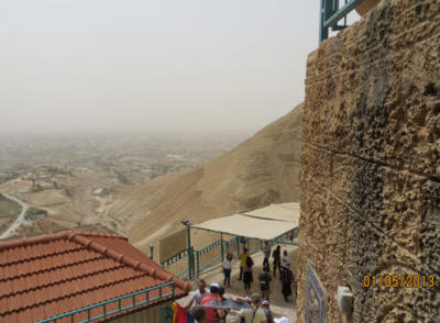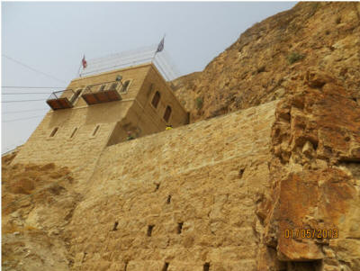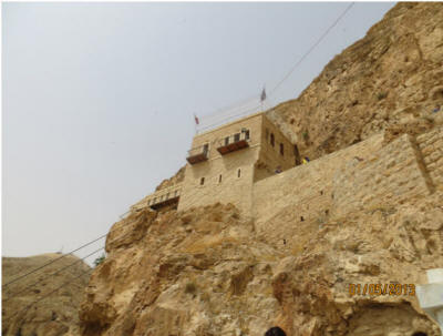 الصور الثلاثة الأخيرة مأخوذة من التجمع الآشورى على الفيس بوك الدير الذي يقع في مدينة القمر "أريحا" الأقدم على مر التاريخ، جذب الكثير من السياح للمكان لا سيما وأن شكل البناء وموقعه كان له الأثر الكبير في ارتياده. "دير قرنطل" أو ما يعرف بـ "جبل الأربعين" هو بناءٌ ملتصقٌ بصخور ذلك الجبل، فكان من المثير بالنسبة لنا أن نصل إلى هدفٍ بدا صعب الوصول، لكن حين تساءلنا عن طريقة الوصول لقمة الجبل الذي يتميز بحدية وعمودية كبيرة، أخبرنا المرشدون بأن الوسيلة إلى ذلك هو "التلفريك" أي القطار المعلق!. وكان الزوار والسياح كانوا يصعدون الجبل على الأقدام قبل وجود التلفريك، حيث كانت تتراوح المدة التي يقطعون خلالها المسافة الشاهقة ما بين ساعة ونصف إلى ساعيتن حتى يصلوا إلى المكان. وبالفعل توجهنا إلى مركز "التلفريك" البديل عن المشي والتسلق، وفي أقل من خمس دقائق كنا على مقربة من دير قرنطل المُشّيد في الصخر، وهناك كانت لنا جولة أخرى حيث تصل آخر نقطة للتلفريك مع الدير أكثر من 180 درجة مبنية في الجبل، وكان لزاماً علينا من أجل الوصول للدير أن نصعد هذا الدرج المتعب جداً. الصعود إليه مغامرةٌ منعشة بحد ذاتها، كيف لا وسحر إطلالة الطبيعة يتجلى من فوقه!، ليرى السائح من حوله مدينة أريحا وجبال الأردن والبحر الميت. "أسس الدير الأرشمندريت إفراميوس سنة 1892، وقامت الهيئات المحلية والدولية بترميمه عدة مرات وإجراء صيانة له كونه في قلب الجبل الصخري الذي يتعرض لانهيارات وغير ذلك، وأول من فكر في المحافظة على قدسيته هي الملكة هيلانة، حيث أقامت عليه تشييداً قديماً منذ عام 325 م". تقول الروايات بأن قرنطل تعني الأربعين، ومع أن مدينة أريحا تنخفض عن سطح البحر ما يقارب 400 متر وهي أخفض بقعة في العالم إلا أن جبل قرنطل الذي فيه الدير يرتفع عن سطح البحر 350 متر وهذا يدلل على ضخامة الارتفاع الذي منه تشاهد مدن الأردن وجباله.