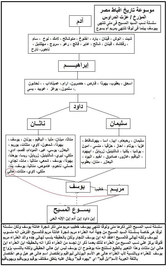 (مر1: 1) 1 بدء انجيل يسوع المسيح ابن الله من جهة إنسانيته وبشريته أولا: سلسلة أنساب المسيح كما جائت فى إنجيل متى (متى1: 1- 17) (ش3) ثانيا : سلسلة أنساب المسيح كما جائت فى إنجيل لوقا (لو23:3-38) ****** من جهة ألوهيته لأنه كلمة الإله (يو1: 1- 5) (يو1: 10- 18) يوحنا تلميذ السيد المسيح يعلن ألوهيته لأنه كلمة الله الذى كان فى البدء : ************************************************************************ لمزيد من الدراسة والبحث الإنجيلى http://www.coptichistory.org/untitled_6829.htm التشابة وألإختلاف والشبهات فى أنساب المسيح فى السلسلتين متى ولوقا |