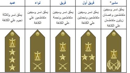 المشير.. أعلى رتبة رتبة المشير للقوات المسلحة المصرية المشير هي أسمى وأعلى رتبة عسكرية في القوات المسلحة ولا يصل إليها إلا القائد العام للقوات المسلحة، ولا يسمح أن يكون هناك أكثر من مشير واحد في الخدمة في نفس الجيش، هذا ما عليه الحال عادة في الدول العربية التي تعرف هذه الرتبة. ويجوز ان يحملها أكثر من شخص في الخدمة في دول أخرى. تعتبر رتبة ” المشير ” هي الرتبة العسكرية الاعلي في العالم وتعرف في مصر وعدد من الدول العربية برتبة ” مشير ” في حين تعرف في دول اخري برتبة ” مارشال ” او ” فلد مارشال ” كما في المانيا ، او ” فليد مارشال ” كما في بريطانيا ، او رتبة ” المهيب ” وهي ايضا تعادل رتبة المشير وتستخدم في العراق . وتمنح رتبة المشير الي القائد العام للقوات المسلحة ” الذي خاض حربا وانتصر فيها “ ، ولا يسمح بتعدد رتبة المشير داخل صفوف الجيش الواحد بحيث يكون هناك مشيرا واحدا في الخدمة العسكرية علي عكس الرتب العسكرية الاخري .... القائد الأعلى للقوات المسلحة هو رئيس الجمهورية، والقائد العام للقوات المسلحة هو وزير الدفاع والإنتاج الحربي. ووزارة الدفاع هي القيادة العليا للقوات المسلحة وتندرج تحتها الأفرع الرئيسية للقوات المسلحة مثل القوات الجوية والقوات البحرية وقوات الدفاع الجوى، وكذلك أيضا الأسلحة المتنوعة للقوات البرية مثل المشاة والمدرعات والمهندسين العسكريين والمدفعية. والقوات المسلحة المصرية مثلها في ذلك مثل المؤسسات العسكرية العالمية المتطورة، عملت علي الأخذ بأحدث الأساليب في تجهيز وتحديث العنصر البشري ليكون قادراً علي مجاراة التطور والحداثة في مجال الدفاع عن تراب الوطن وشعبه، فكان أن أنشئ خلال حقبة القرن العشرين العديد من الكليات والمعاهد العسكرية التي تخرج منها أجيال من أبطال العسكرية المصرية. والرتب في الجيش المصري تبدأ بملازم ، وصولاً الي الرتبة الأعلى علي الإطلاق رتبة المشير. والرتب الوحيدة التي تميز بنوع العمل الي جانب الرتبة الأصلية هي رتب (ضابط طيار - ضابط جوي - ضابط بحري - ضابط طبيب - ضابط مهندس). | القادة الذين حصلوا على رتبة المشير وعلي مدي الدهر كان رجال الجيش المصري خير عون وسند لشعبه العريق... وفي زمننا الراهن، فإن القوات المسلحة المصرية هي القوات النظامية لجمهورية مصر العربية، تنقسم إلى أربع أفرع رئيسية، هي قيادة الدفاع الجوي المصري، القوات الجوية المصرية، القوات البحرية المصرية، والقوات البرية المصرية، ويجيئ تصنيف القوات المسلحة المصرية في ترتيب متقدم عالمياً، ويشار اليها على انها الأقوى والأكبر عربيا وإفريقيا. كما توجد في مصر قوة شبه عسكرية تحت سيطرة وزارة الدخلية المصرية وهي قوات الأمن المركزي وتبلغ حوالي 300,000 فرد. كما يوجد قوات الحرس الجمهوري، وحرس الحدود ولكنها تحت سيطرة وزارة الدفاع. تاريخ رتبة المشير فى مصر 8 شخصيات عسكرية حملت رتبة المشير في تاريخ مصر، منذ قيام ثورة يوليو 1952، بدأت بعبد الحكيم عامر، ووصلت إلى السيسي، المشير التاسع في تاريخ الجمهورية. ضربة البداية جاءت مع عبد الحكيم عامر، الصديق المقرب من الزعيم الراحل جمال عبد الناصر، الذي تمت ترقيته من رتبة صاغ «رائد» إلى رتبة لواء عام 1953، ليتخطى 3 رتب عسكرية دفعة واحدة وعمره 34 عاما فقط، ويصبح قائداً عاما للجيش المصري ووزيراً للدفاع. الترقية المفاجئة لم تكن نهاية صعود عامر، فبعد حرب العدوان الثلاثي، تمت ترقية عبد الحكيم مرة أخرى إلى رتبة الفريق عام 1958، وفي أسرع ترقية عسكرية، تم تسمية الفريق عامر مشيراً في 23 فبراير 1958، ليسافر إلى سوريا، ويقود من هناك الجيشين المصري والسوري، تحت اسم جيش الجمهورية العربية المتحدة. بعد الوحدة التي لم تدم طويلا، عاد المشير الصغير مطرودا من سوريا إلى القاهرة، وانهارت الوحدة بين البلدين عام 1961، وبعد الطرد بستة أعوام، يخوض المشير عامر، تجربة هزيمة قاسية في سيناء، حيث تم تدمير أكثر من 80% من قوات مصر المدرعة، واحتلت القوات الإسرائيلية قطاع غزة والضفة ال