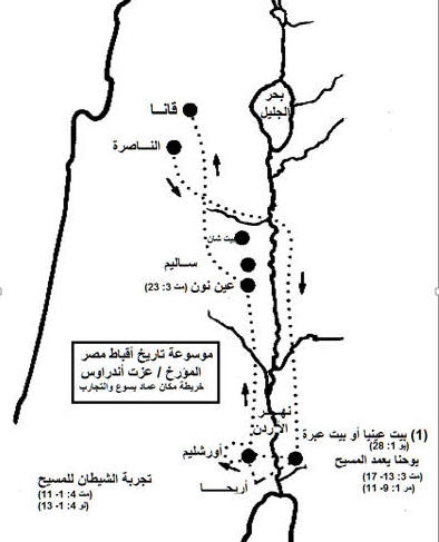 **************** المراجع (1) قارن هذه ألاية فى لوقا (لو3: 3) مع الآية مكررة فى إنجيل (مر1: 4- 6) (ش8) 4 كان يوحنا يعمد في البرية ويكرز بمعمودية التوبة لمغفرة الخطايا. (2) قارن هذه ألاية فى لوقا (لو3: 16) مع الآية المكررة فى إنجبل مرقس (مر1: 7- 8) (ش7) وكان يكرز قائلا ياتي بعدي من هو اقوى مني الذي لست اهلا ان انحني واحل سيور حذائه. 8 انا عمدتكم بالماء واما هو فسيعمدكم بالروح القدس (3) قارن هذه ألاية فى هذه الآية (مت 3: 4) مكررة فى إنجيل مرقس (مر1: 6) 6 وكان يوحنا يلبس وبر الابل ومنطقة من جلد على حقويه وياكل جرادا وعسلا بريا. (4) قارن هذه ألاية فى هذه الآية (مت 3: 6) هذه الآية مكررة فى إنجيل (مر1: 4- 6)(ش8 ف4) 5 وخرج اليه جميع كورة اليهودية واهل اورشليم واعتمدوا جميعهم منه في نهر الاردن معترفين بخطاياهم. (5) قارن هذه ألايات من إنجيل متى (متى3: 7- 12) مكررة فى (لو3: 7- 9) 7 وكان يقول للجموع الذين خرجوا ليعتمدوا منه يا اولاد الافاعي من اراكم ان تهربوا من الغضب الاتي. 8 فاصنعوا اثمارا تليق بالتوبة.ولا تبتدئوا تقولون في انفسكم لنا ابراهيم ابا.لاني اقول لكم ان الله قادر ان يقيم من هذه الحجارة اولادا لابراهيم. 9 والان قد وضعت الفاس على اصل الشجر.فكل شجرة لا تصنع ثمرا جيدا تقطع وتلقى في النار. (6) قارن هذه ألايات من إنجيل متى (متى3: 13- 17) مع الآيات المكررة فى إنجيلين مرقس ولوقا (مر 1: 9- 11) 9 وفي تلك الايام جاء يسوع من ناصرة الجليل واعتمد من يوحنا في الاردن. 10 وللوقت وهو صاعد من الماء راى السموات قد انشقت والروح مثل حمامة نازلا عليه. 11 وكان صوت من السموات.انت ابني الحبيب الذي به سررت (لو 3: 21- 22) 21 ولما اعتمد جميع الشعب اعتمد يسوع ايضا.واذ كان يصلي انفتحت السماء 22 ونزل عليه الروح القدس بهيئة جسمية مثل حمامة وكان صوت من السماء قائلا انت ابني الحبيب بك سررت (7) قارن هذه ألايات من إنجيل لوفا (لو 4: 1- 13) مع الآيات المكررة فى إنجيلين متى ومرقس (مت 4: 1- 10) (ش6) 1 ثم اصعد يسوع الى البرية من الروح ليجرب من ابليس. 2 فبعدما صام اربعين نهارا واربعين ليلة جاع اخيرا. 3 فتقدم اليه المجرب وقال له ان كنت ابن الله فقل ان تصير هذه الحجارة خبزا. 4 فاجاب وقال مكتوب ليس بالخبز وحده يحيا الانسان بل بكل كلمة تخرج من فم الله. 5 ثم اخذه ابليس الى المدينة المقدسة واوقفه على جناح الهيكل. 6 وقال له ان كنت ابن الله فاطرح نفسك الى اسفل.لانه مكتوب انه يوصي ملائكته بك.فعلى اياديهم يحملونك لكي لا تصدم بحجر رجلك. 7 قال له يسوع مكتوب ايضا لا تجرب الرب الهك. 8 ثم اخذه ايضا ابليس الى جبل عال جدا واراه جميع ممالك العالم ومجدها. 9 وقال له اعطيك هذه جميعها ان خررت وسجدت لي. 10 حينئذ قال له يسوع اذهب يا شيطان.لانه مكتوب للرب الهك تسجد واياه وحده تعبد. http://www.coptichistory.org/untitled_6497.htm صور المعمودية فى نهر الأردن وتعميد الفتيات والنساء الكبار فى السن فى داخل الكنيسة القبطية