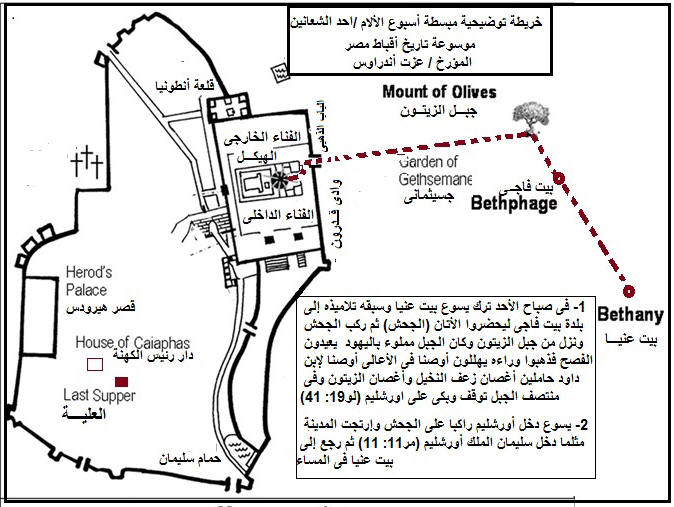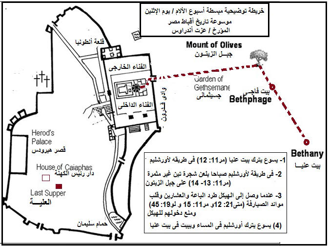 الفصل الواحد والعشرين: قمنا فى هذا الفصل من مجمل الأناجيل الأربعة وتاريخها وجغرافيتها بجمع كل آيات الأناجيل الأربعة ورتبناها وصنفناها طبقا للتسلسل الزمنى ورحلات السيد المسيح التبشيرية وجارى العمل بوضع أجزاء تاريخية وجغرافيا للدارس والباحث الإنجيلى و ********************************************************* - حرف(ش) تعنى شبهات : الشبهات الوهمية على آيات صفحة الفصل الثانى والعشرون وبها الشبهات والردود عليها : تفسير متى على الفصل الثانى والعشرين - تفسير مرقس على الفصل22 - تفسير إنجيل لوقا 19: 28 - 48 **************************** مجمل الأناجيل الأربعة: الفصل الثانى والعشرين (لو19: 28) 28 ولما قال هذا تقدم صاعدا الى اورشليم. (يو12: 12) (لو19: 39- 40) 39 واما بعض الفريسيين من الجمع فقالوا له يا معلم انتهر تلاميذك. 40 فاجاب وقال لهم اقول لكم انه ان سكت هؤلاء فالحجارة تصرخ (يو12: 19) 19 فقال الفريسيون بعضهم لبعض انظروا.انكم لا تنفعون شيئا.هوذا العالم قد ذهب وراءه (يو12: 37- 43) 37 ومع انه كان قد صنع امامهم ايات هذا عددها لم يؤمنوا به. 38 ليتم قول اشعياء النبي الذي قاله يا رب من صدق خبرنا ولمن استعلنت ذراع الرب. 39 لهذا لم يقدروا ان يؤمنوا.لان اشعياء قال ايضا. 40 قد اعمى عيونهم واغلظ قلوبهم لئلا يبصروا بعيونهم ويشعروا بقلوبهم ويرجعوا فاشفيهم. 41 قال اشعياء هذا حين راى مجده وتكلم عنه. 42 ولكن مع ذلك امن به كثيرون من الرؤساء ايضا غير انهم لسبب الفريسيين لم يعترفوا به لئلا يصيروا خارج المجمع. 43 لانهم احبوا مجد الناس اكثر من مجد الله (يو12: 20- 36) 20 وكان اناس يونانيون من الذين صعدوا ليسجدوا في العيد. 21 فتقدم هؤلاء الى فيلبس الذي من بيت صيدا الجليل وسالوه قائلين يا سيد نريد ان نرى يسوع. 22 فاتى فيلبس وقال لاندراوس ثم قال اندراوس و فيلبس ليسوع. 23 واما يسوع فاجابهما قائلا قد اتت الساعة ليتمجد ابن الانسان. 24 الحق الحق اقول لكم ان لم تقع حبة الحنطة في الارض وتمت فهي تبقى وحدها.ولكن ان ماتت تاتي بثمر كثير. 25 من يحب نفسه يهلكها ومن يبغض نفسه في هذا العالم يحفظها الى حياة ابدية. 26 ان كان احد يخدمني فليتبعني.وحيث اكون انا هناك ايضا يكون خادمي.وان كان احد يخدمني يكرمه الاب. 27 الان نفسي قد اضطربت.وماذا اقول.ايها الاب نجني من هذه الساعة.ولكن لاجل هذا اتيت الى هذه الساعة. 28 ايها الاب مجد اسمك.فجاء صوت من السماء مجدت وامجد ايضا. 29 فالجمع الذي كان واقفا وسمع قال قد حدث رعد.واخرون قالوا قد كلمه ملاك. 30 اجاب يسوع وقال ليس من اجلي صار هذا الصوت بل من اجلكم. 31 الان دينونة هذا العالم.الان يطرح رئيس هذا العالم خارجا. 32 وانا ان ارتفعت عن الارض اجذب الي الجميع. 33 قال هذا مشيرا الى اية ميتة كان مزمعا ان يموت.(ش3) 34 فاجابه الجمع نحن سمعنا من الناموس ان المسيح يبقى الى الابد.فكيف تقول انت انه ينبغي ان يرتفع ابن الانسان.من هو هذا ابن الانسان. 35 فقال لهم يسوع النور معكم زمانا قليلا بعد.فسيروا ما دام لكم النور لئلا يدرككم الظلام.والذي يسير في الظلام لا يعلم الى اين يذهب. (يو12: 36- 43) 36 ما دام لكم النور امنوا بالنور لتصيروا ابناء النور.تكلم يسوع بهذا ثم مضى واختفى عنهم (يو12: 44- 50) 44 فنادى يسوع وقال.الذي يؤمن بي ليس يؤمن بي بل بالذي ارسلني. 45 والذي يراني يرى الذي ارسلني. 46 انا قد جئت نورا الى العالم حتى كل من يؤمن بي لا يمكث في الظلمة. 47 وان سمع احد كلامي ولم يؤمن فانا لا ادينه.لاني لم ات لادين العالم بل لاخلص العالم. 48 من رذلني ولم يقبل كلامي فله من يدينه.الكلام الذي تكلمت به هو يدينه في اليوم الاخير. 49 لاني لم اتكلم من نفسي لكن الاب الذي ارسلني هو اعطاني وصية ماذا اقول وبماذا اتكلم. 50 وانا اعلم ان وصيته هي حياة ابدية.فما اتكلم انا به فكما قال لي الاب هكذا اتكلم (مر 11- 11) 11 فدخل يسوع اورشليم والهيكل ولما نظر حوله الى كل شيء اذ كان الوقت قد امسى خرج الى بيت عنيا مع الاثني عشر.(ش1) (مر11: 12- 14) 12 وفي الغد لما خرجوا من بيت عنيا جاع. 13 فنظر شجرة تين من بعيد عليها ورق وجاء لعله يجد فيها شيئا فلما جاء اليها لم يجد شيئا الا ورقا. لانه لم ي