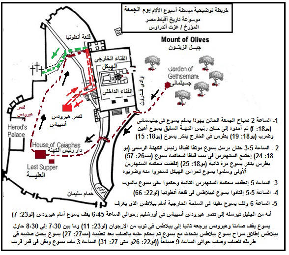 الفصل السادس والعشرين: قمنا فى هذا الفصل من مجمل الأناجيل الأربعة وتاريخها وجغرافيتها بجمع كل آيات الأناجيل الأربعة ورتبناها وصنفناها طبقا للتسلسل الزمنى ورحلات السيد المسيح التبشيرية وجارى العمل بوضع أجزاء تاريخية وجغرافيا للدارس والباحث الإنجيلى *************************************************** حرف(ش) تعنى شبهات : الشبهات الوهمية على آيات صفحة الفصل السابع والعشرون وبها الشبهات والردود عليها : تفسير متى على الفصل السابع والعشرين - تفسير إنجيل مرقس على الفصل 27 & تفسير إنجيل لوقا (لوقا 23: 17 - 43) & مجمل الأناجيل الأربعة: الفصل السابع والعشرين (يو18: 38) 38 قال له بيلاطس ما هو الحق . ولما قال هذا خرج ايضا الى اليهود وقال لهم انا لست اجد فيه علة واحدة. (مر15: 6) (1) 6 وكان (مر15: 8) 8 فصرخ الجمع وابتداوا يطلبون ان يفعل كما كان دائما يفعل لهم. (متى27: 27) (9) 27 فاخذ عسكر الوالي يسوع الى دار الولاية وجمعوا عليه كل الكتيبة. (متى27: 28) 28 فعروه والبسوه رداء قرمزيا. (متى27: 29) (10) 29 و ضفروا اكليلا من شوك ووضعوه على راسه وقصبة في يمينه . وكانوا يجثون قدامه ويستهزئون به قائلين السلام يا ملك اليهود. (مر15: 19) (11) 19 وكانوا يضربونه على راسه بقصبة ويبصقون عليه ثم يسجدون له جاثين على ركبهم. (مر15: 20) (12) 20 وبعدما استهزاوا به نزعوا عنه الارجوان والبسوه ثيابه ثم خرجوا به ليصلبوه . (لو23: 26) (13) 26 ولما مضوا به امسكوا سمعان رجلا قيروانيا كان اتيا من الحقل ووضعوا عليه الصليب ليحمله خلف يسوع.(ش2) (لو23: 27- 31) 27 وتبعه جمهور كثير من الشعب والنساء اللواتي كن يلطمن ايضا وينحن عليه. 28 فالتفت اليهن يسوع وقال . يا بنات اورشليم لا تبكين علي بل ابكين على انفسكن وعلى اولادكن. 29 لانه هوذا ايام تاتي يقولون فيها طوبى للعواقر والبطون التي لم تلد والثدي التي لم ترضع. 30 حينئذ يبتدئون يقولون للجبال اسقطي علينا وللاكام غطينا. 31 لانه ان كانوا بالعود الرطب يفعلون هذا فماذا يكون باليابس. (لو23: 32) 32 وجاءوا ايضا باثنين اخرين مذنبين ليقتلا معه (يو19: 17) (14) 17 فخرج وهو حامل صليبه الى الموضع الذي يقال له موضع الجمجمة ويقال له بالعبرانية جلجثة (مر15: 27) (15) 27 وصلبوا معه لصين واحدا عن يمينه واخر عن يساره. (مر15: 28) 28 فتم الكتاب القائل واحصي مع اثمة. (مر15: 25) 25 وكانت الساعة الثالثة فصلبوه.(ش1) (يو19: 23- 24) (16) 23 ثم ان العسكر لما كانوا قد صلبوا يسوع اخذوا ثيابه وجعلوها اربعة اقسام لكل عسكري قسما.واخذوا القميص ايضا.وكان القميص بغير خياطة منسوجا كله من فوق. 24 فقال بعضهم لبعض لا نشقه بل نقترع عليه لمن يكون.ليتم الكتاب القائل اقتسموا ثيابي بينهم وعلى لباسي القوا قرعة . هذا فعله العسكر (متى27: 36) 36 ثم جلسوا يحرسونه هناك. (لو23: 34) 34 فقال يسوع يا ابتاه اغفر لهم لانهم لا يعلمون ماذا يفعلون.واذ اقتسموا ثيابه اقترعوا عليها(ش3) (متى27: 34) (17) 34 اعطوه خلا ممزوجا بمرارة ليشرب . ولما ذاق لم يرد ان يشرب (مر15: 26) 26 وكان عنوان علته مكتوبا ملك اليهود. (يو19: 19) (18) 19 وكتب بيلاطس عنوانا ووضعه على الصليب.وكان مكتوبا يسوع الناصري ملك اليهود. (يو19: 20) (19) 20 فقرا هذا العنوان كثيرون من اليهود لان المكان الذي صلب فيه يسوع كان قريبا من المدينة.وكان مكتوبا بالعبرانية واليونانية واللاتينية. (يو19: 21- 22) 21 فقال رؤساء الكهنة اليهود لبيلاطس لا تكتب ملك اليهود بل ان ذاك قال انا ملك اليهود. 22 اجاب (لو23: 35- 37) 35 وكان الشعب واقفين ينظرون.والرؤساء ايضا معهم يسخرون به قائلين خلص اخرين فليخلص نفسه ان كان هو المسيح مختار الله. 36 والجند ايضا استهزاوا به وهم ياتون ويقدمون له خلا 37 قائلين ان كنت انت ملك اليهود فخلص نفسك. (لو23: 39- 41) 39 وكان واحد من المذنبين المعلقين يجدف عليه قائلا ان كنت انت المسيح فخلص نفسك وايانا. 40 فاجاب الاخر وانتهره قائلا اولا انت تخاف الله اذ انت تحت هذا الحكم بعينه. 41 اما نحن فبعدل لاننا ننال استحقاق ما فعلنا.واما هذا فلم يفعل شيئا ليس في محله (لو23: 42- 43) 42 ثم قال ليسوع اذكرني يا رب متى جئت في ملكوتك . 43 فقال له يسوع الحق اقول لك انك اليوم تكون معي في الفردوس *