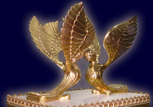 4) السّفينْكس† الذي في مصر وهيئات مشابهة نجدها في قصر الملك أخآب العاجي في السامرة.