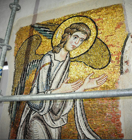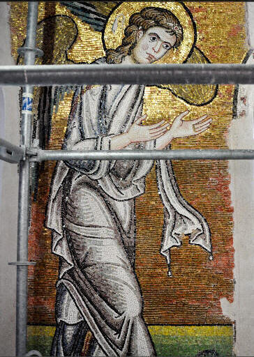 اكتشاف "الملاك" السابع بكنيسة المهد في بيت لحمفى 30/6/2016م وكالة الأنباء بى بى يى كشف عمال ترميم إيطاليون في كنيسة المهد الواقعة في مدينة بيت لحم في الضفة الغربية عن لوحة فسيفساء رائعة مصنوعة من رقائق الذهب والفضة واللالئ والزجاج الملون لملاك كان في السابق مخبأ تحت طبقة من الجير والملاك السابع ظهر وهو ينظر إلى مكانولادة يسوع فى كنيسة المهد وكانت الفسيفساء مغطاه بطبقة من الجير وقد نعرضت الفسيفساء لأضرار من الغبار والأتربة والأمطار المتسربة من السقف ودخان الشموع وعلماءالآثار يأملون إكتشاف لوحات من هذا النوع فى القسم القديم من كنيسة المهد وأدت التوترات بين الطوائف المسيحية المختلفة إلى تأخر كبير في بدء بالترميمات اللازمة في الكنيسة. وتوسطت السلطة الفلسطينة بين الأطراف مما أدى إلى اتفاق أفضى إلى البدء بأعمال الترميم قبل 3 سنوات. | ||