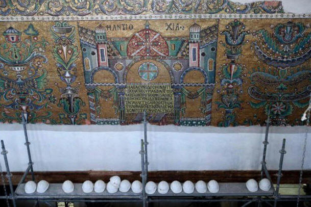 اكتشاف كنوز بكنيسة “المهد” فى فلسطين بالصدفةJuly 14, 2016, اكتشف مجموعة من المرممين الإيطاليين مجموعة لوحات من الفسيفساء، ترجع إلى أيام الصليبيين، بالصدفة خلال عمليات الترميم والتنظيف التى كانوا يقومون بها فى كنيسة المهد فى بيت لحم بالضفة الغربية بفلسطين. اللوحات كانت مخبأة تحت طبقة من الجير، وتم تنظيفها و ترميمها، بالإضافة إلى الانتهاء من إصلاح هيكل السقف والنوافذ، بفضل مشروع الترميم الذى تمول جزء منه الحكومة الفلسطينية، ويعد أكبر عملية ترميم فى الكنيسة منذ بنائها قبل نحو 600 عام، طبقا لعدد من الوكالات. وعمليات الترميم كانت قد بدأت قبل ثلاثة سنوات، وتعد كنيسة المهد واحدة من أقدس الأماكن المسيحية فى فلسطين، ومن أكثر المواقع السياحية زيارة، وأدرجتها اليونيسكو ضمن المواقع المهددة بالانقراض. ومن أبرز اللوحات التى تم العثور عليها هى لوحة الملاك السابع، وقد بنيت الكنيسة بمبادرة من القديسة هيلانة فى القرن الرابع الميلادى، فوق كهف يقال إن السيدة مريم العذراء أنجبت السيد المسيح فيه. | ||