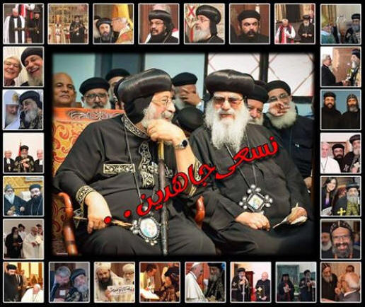 + البند الخامس عشر لا يجوز للاسقف ولا للقس بان يتعاطى مهمات سياسية بل يجب ان يصرف زمانه في المصالح الكنائسية فمن لا يطيع يستوجب القطع لانه لا يستطيع احد ان يعبد ربين حسب الامر الرباني. + قوانين الرسل القديسين الاطهار ، القانون الحادي والثمانون + لم نقبل كل تصرفات الانبا تواضروس السياسية وميوله وخنوعه وحبه للسلطة والمال على حساب دماء شهدائنا، هو بطريرك للدولة من الدرجة الاولى بإمتياز، لان الاجير ليس راعي كما قال المسيح : وأما الذي هو أجير، وليس راعيا، الذي ليست الخراف له، فيرى الذئب مقبلا ويترك الخراف ويهرب، فيخطف الذئب الخراف ويبددها. والأجير يهرب لأنه أجير، ولا يبالي بالخراف يوحنا 10 : 12 ، 13 + XV Item Laws of the Apostles Saints - Eighty-first Law: It is not permissible for the bishop or the priest to take political missions, but rather to spend his time in the ecclesiastical interests, who does not obey must be cut because no one can worship two Lords . We have not accepted all the political actions of Anba Tawadros, his tendencies, his love for power and money at the expense of the blood of our martyrs, he is the patriarch of the state. In all his visits abroad he calls for the support of the president, spreading the misconception: that any leadership should be trusted.