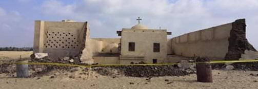 | Encyclopedia - أنسكلوبيديا موسوعة تاريخ أقباط مصر - Coptic history بقلم المؤرخ / عزت اندراوس انهيار الحائط الغربي للكنيسة الأثرية فى دير القديس أبو فانا |