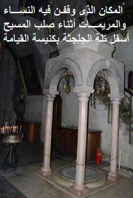 النساء يتبعن يسوع فى مسيرته بطريق الألام حتى الصلب وشاهدن آلامه وهو على الصليب والدفن - والمكان الذى وقفن فيه النسوة كان أسفل تلة الجلجثة فيما عدا مريم ويوحنا كانا قريبين من الصليب لأن يوحنا فيما يعتقد كانت له صلات كثيرة برئيس الكهنة والرومان بدليل أقترابه من صليب المسيح فوق تلة الجلجثة فى وجود مجلس السنهدرين الذى كان رؤساء الكهنة والفريسيين .. وغيرهم أعضاء فيه وجنود الرومان
