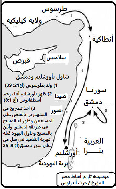 ثانيا : التفسير الحرفى والتاريخى والجغرافى - إعداد عزت اندراوس 1) " وَفِي ذَهَابِهِ حَدَثَ أَنَّهُ ٱقْتَرَبَ إِلَى دِمَشْقَ فَبَغْتَةً أَبْرَقَ حَوْلَهُ نُورٌ مِنَ ٱلسَّمَاءِ" ***ٱقْتَرَبَ إِلَى دِمَشْقَ أى أن المدينة كانت فى مرمى البصر ينظرونها من بعيد المكان غير المعروف والأرجح أنه غير بعيد عن المدينة وكانت منتصف النهار (أع ٢٦: ١٣). كانت مدينة دمشق عاصمة لإقليم سورية الرومانية الواقعة فى شمال / شمال شرق الجليل وتبعد عن أورشليم 160 ميل *** فَبَغْتَةً : أى فجأة بدون توقع *** نُورٌ مِنَ ٱلسَّمَاءِ يروي بولس خبرته مع ھذا النور بشكل مختلف في رواياته الثلاثة التي يتكلم فيھا عن خبرته في أعمال الرسل: أ. أبرق حوله نور (أع 6: 3) ب. "بغته أبرق حولى من السماء نور عظيم (أع 22: 6) ج. رايت في نصف النهار في الطريق، ايها الملك، نورا من السماء افضل من لمعان الشمس، قد ابرق حولي وحول الذاهبين معي.(أع 22: 6) لم تختفى هذه الحادثة من ذاكرة بولس ويتذكر بولس ھذه الحادثة بصورة نابضة بالحياة. ربما كان ھذا النور مرتبط ً / لاھوتيا ماديا بمجد الشكينه (Shekinah بحضور الرب/يھوه مع إسرائيل خلال فترة التيه في البرية. المفھوم العبري لـ "المجد" يأخذ النور جانب الباھر من ھذا الحدث التاريخي ان.النور كان ليظھر لشاول الرابي أن ھذا ھو الحضور الشخصي للرب . هذا ليس برقاً بدليل أن بولس وصفه في (أع ٢٦: ١٣) 13 رايت في نصف النهار في الطريق، ايها الملك، نورا من السماء افضل من لمعان الشمس، قد ابرق حولي وحول الذاهبين معي. " بأنه «نور من السماء أفضل من لمعان الشمس» فهو بهاء جلال يسوع وهو متمجّد وأن الكتاب صرح بأنه اقترن بظهور يسوع لبولس ومن ذلك قول حنانيا «قَدْ أَرْسَلَنِي ٱلرَّبُّ يَسُوعُ ٱلَّذِي ظَهَرَ لَكَ فِي ٱلطَّرِيقِ» (أع 9: ١٧) وإنباء برنابا للرسل بأمر بولس من أنه «كَيْفَ أَبْصَرَ ٱلرَّبَّ فِي ٱلطَّرِيقِ وَأَنَّهُ كَلَّمَهُ» (أع 9: 27) وقول بولس «وَآخِرَ ٱلْكُلِّ كَأَنَّهُ لِلسِّقْطِ ظَهَرَ لِي أَنَا» (١كورنثوس ١٥: ٨). وهذا كظهور الله سابقاً للناس فإنه كذلك ظهر لموسى في العليقة (خروج ٣: ٢)2 وظهر له ملاك الرب بلهيب نار من وسط عليقة.فنظر واذ العليقة تتوقد بالنار والعليقة لم تكن تحترق. " ولشعب إسرائيل في عمود النار (خروج ١٢: ٢١ و٢٢) 21 فدعا موسى جميع شيوخ اسرائيل وقال لهم اسحبوا وخذوا لكم غنما بحسب عشائركم واذبحوا الفصح. 22 وخذوا باقة زوفا واغمسوها في الدم الذي في الطست ومسوا العتبة العليا والقائمتين بالدم الذي في الطست.وانتم لا يخرج احد منكم من باب بيته حتى الصباح. " وفي خيمة الاجتماع (خروج ٤٠: ٣٤ و٣٨) 34 ثم غطت السحابة خيمة الاجتماع وملا بهاء الرب المسكن. 38 لان سحابة الرب كانت على المسكن نهارا.وكانت فيها نار ليلا امام عيون كل بيت اسرائيل في جميع رحلاتهم " وفي الهيكل (٢أيام ٧: ١ - ٣ ) 1 ولما انتهى سليمان من الصلاة نزلت النار من السماء واكلت المحرقة والذبائح وملا مجد الرب البيت. 2 ولم يستطع الكهنة ان يدخلوا بيت الرب لان مجد الرب ملا بيت الرب. 3 وكان جميع بني اسرائيل ينظرون عند نزول النار ومجد الرب على البيت وخروا على وجوههم الى الارض على البلاط المجزع وسجدوا وحمدوا الرب لانه صالح والى الابد رحمته ( إشعياء ٤: ٤ - ٦) 4 اذا غسل السيد قذر بنات صهيون ونقى دم اورشليم من وسطها بروح القضاء وبروح الاحراق 5 يخلق الرب على كل مكان من جبل صهيون وعلى محفلها سحابة نهارا ودخانا ولمعان نار ملتهبة ليلا.لان على كل مجد غطاء. 6 وتكون مظلة للفيء نهارا من الحر ولملجا ولمخبا من السيل ومن المطر " وكذلك ظهر عند ميلاد يسوع (لوقا ٢: ٩) وعند تجليه على الجبل (متّى ١٧: ١ - ٥) 1 وبعد ستة ايام اخذ يسوع بطرس ويعقوب ويوحنا اخاه وصعد بهم الى جبل عال منفردين. 2 وتغيرت هيئته قدامهم واضاء وجهه كالشمس وصارت ثيابه بيضاء كالنور. 3 واذا موسى وايليا قد ظهرا لهم يتكلمان معه. 4 فجعل بطرس يقول ليسوع: «يا رب جيد ان نكون ههنا! فان شئت نصنع هنا ثلاث مظال. لك واحدة ولموسى واحدة ولايليا واحدة». 5 وفيما هو يتكلم اذا سحابة ني